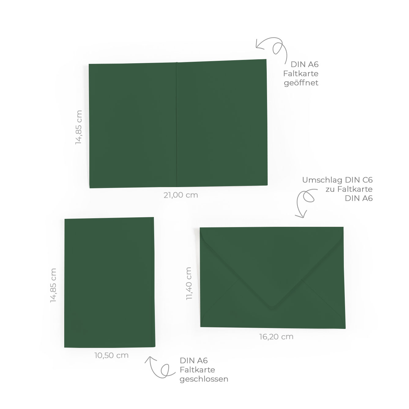 Faltkarte DIN A6 mit Briefumschlag DIN C6 in waldgrün