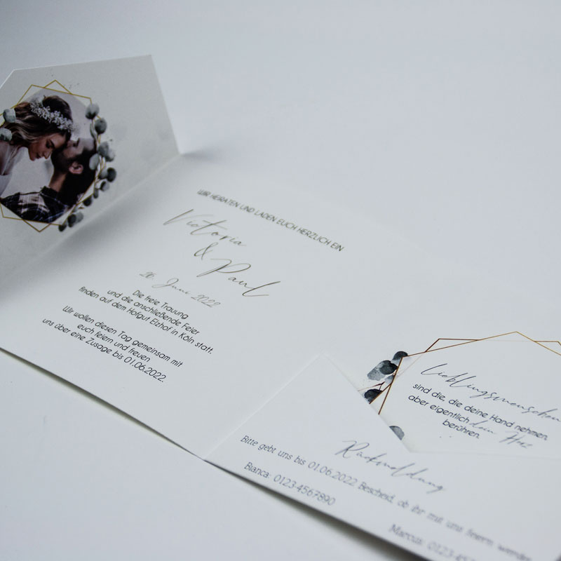 Laden Sie über unseren Online-Konfigurator Ihre eigenen Bilder oder Motive hoch und gestalten Sie so Ihre ganz individuelle Pocketfold-Karte.