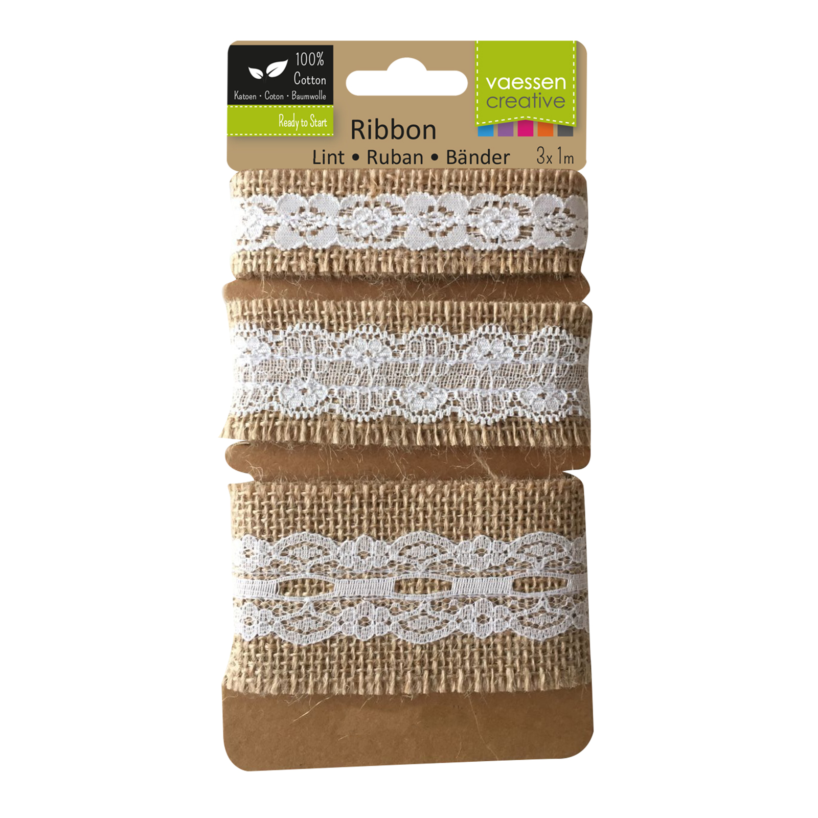 Vaessen Creative - Naturband - Assortiment Juten Band/Lace Naturel/Ivory - Ribbon (1111-291)